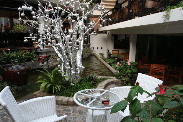 Không gian trên Thuyền chia thành nhiều phong cách khác nhau phù hợp với nhiều đối tượng thực khách. Khu vực tầng dưới được bày trí không gian mở thoáng mát và trong lành, hàng cây kiểng xung quanh nhiều màu sắc như tạo thêm điểm nhấn cho không gian.