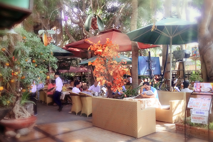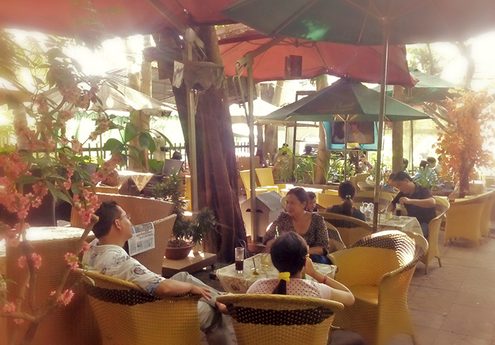 Ngồi trên những chiếc ghế mây êm ái, nhấp một ngụm cà phê nóng dưới những tán cây cổ thụ to lớn vươn dài, ngắm nhìn những chú cá tung tăng bơi lội dưới làn nước mát, những khóm hoa đua nhau nở hương sắc cùng những rặng tre ngà đung đưa trong nắng chắc chắn sẽ làm siêu lòng bất cứ ai đã từng đặt chân đến đây.