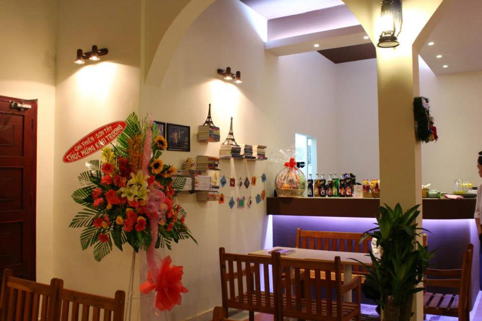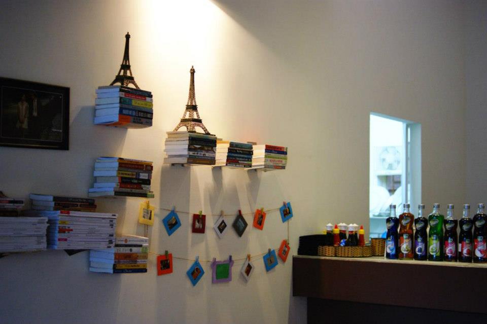 Café de la Gare được chăm chút tỉ mẩn từng góc thiết kế nhỏ trong quán, chỗ là những chồng sách nằm lơ lửng trong tường, kệ sách được giấu đi một cách vô cùng bí ẩn mà có lúc bạn nhìn hoài cũng ko hiểu sách gắn vào đâu. Điểm xuyết xung quanh là những mô hình xe buýt nhỏ, tháp Eiffel,… và những bức tranh tường tả cảnh đồng quê, nhưng cô gái làm mùa vụ… Điểm nhấn của quán khi từ ngoài bước vào là một bức tranh rất lớn vẽ cảnh đoàn tàu lửa chuẩn bị vào ga, nghĩa là, một hành trình cũ sắp kết thúc, và hành trình mới lại bắt đầu.