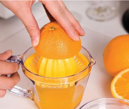 2 quả cam 4 muỗng cafe đường Dụng cụ: ly đựng , cốc , thìa , máy ép thủ công Các bước thực hiện cách pha nước cam ngon